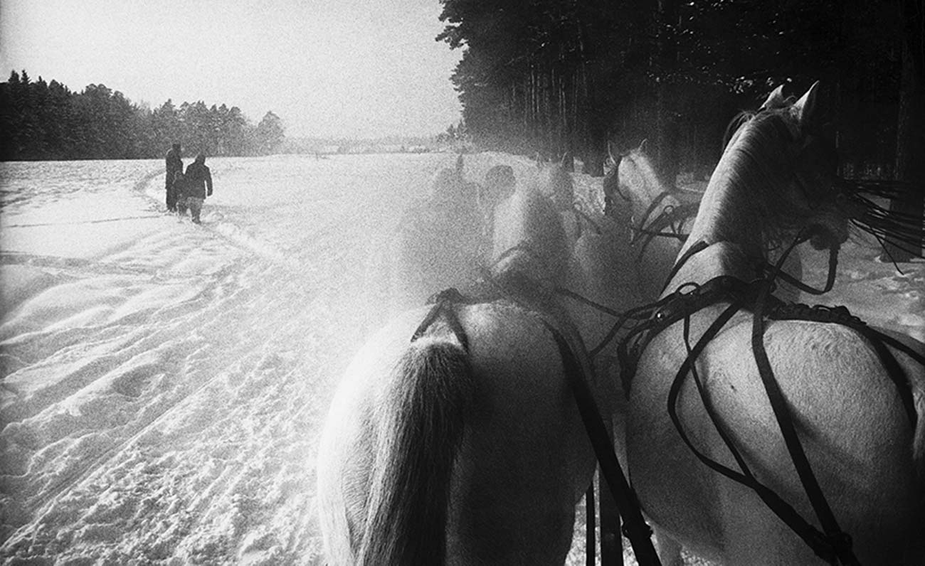 NEW YORK, 1957“Piatniza”, una slitta trainata da cinque cavalli “Piatniza”, a sleigh