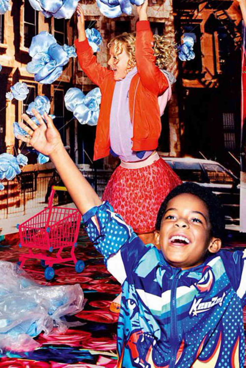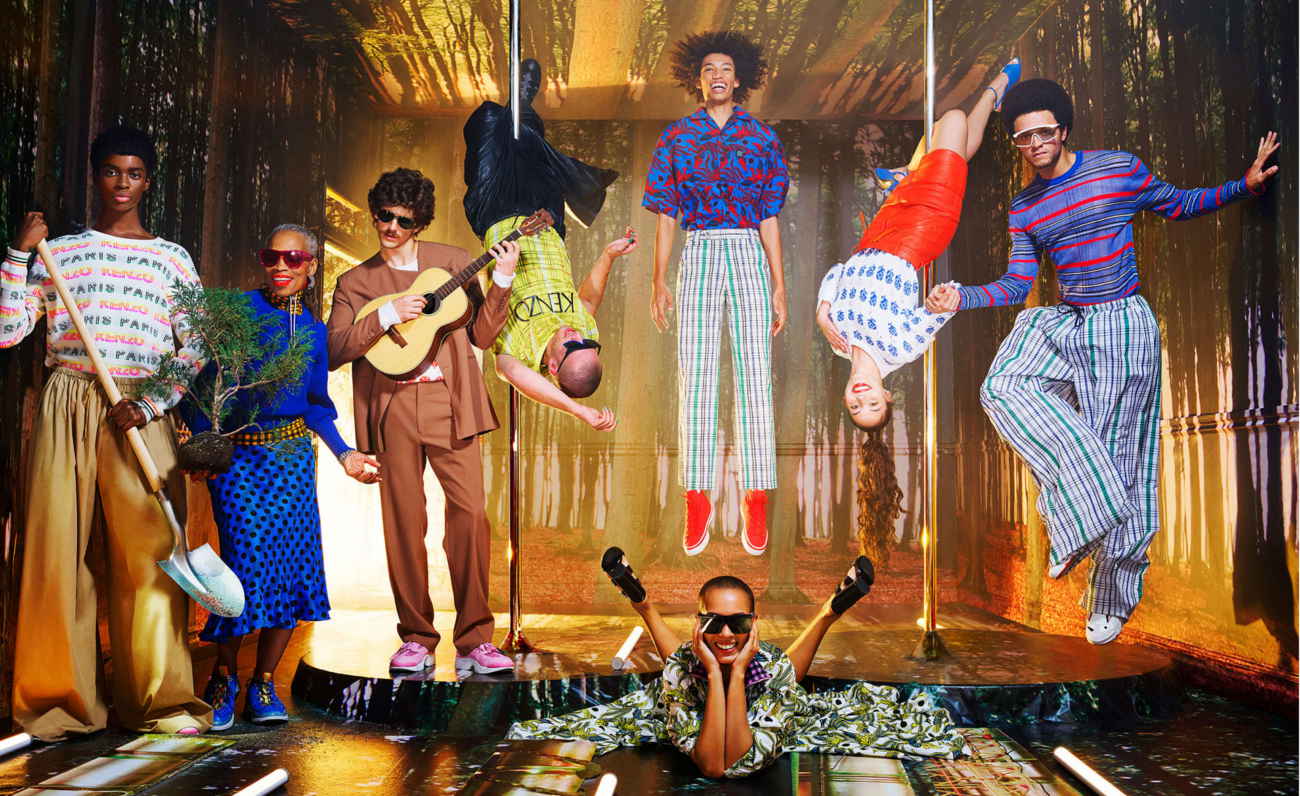 Il sogno collettivo di un modo migliore è il fil rouge di Kenzotopia, dove fantasia, dinamismo e accostamenti vibranti irrompono in una quotidianità abitata da ballerini, studenti, musicisti, giovani e meno giovani (è presente negli scatti anche Wendy, la madre di Humberto Leon, direttore creativo della maison assieme a Carol Lim) colti in un paesaggio urbano e selvaggio ai confini fra il sogno e realtà.