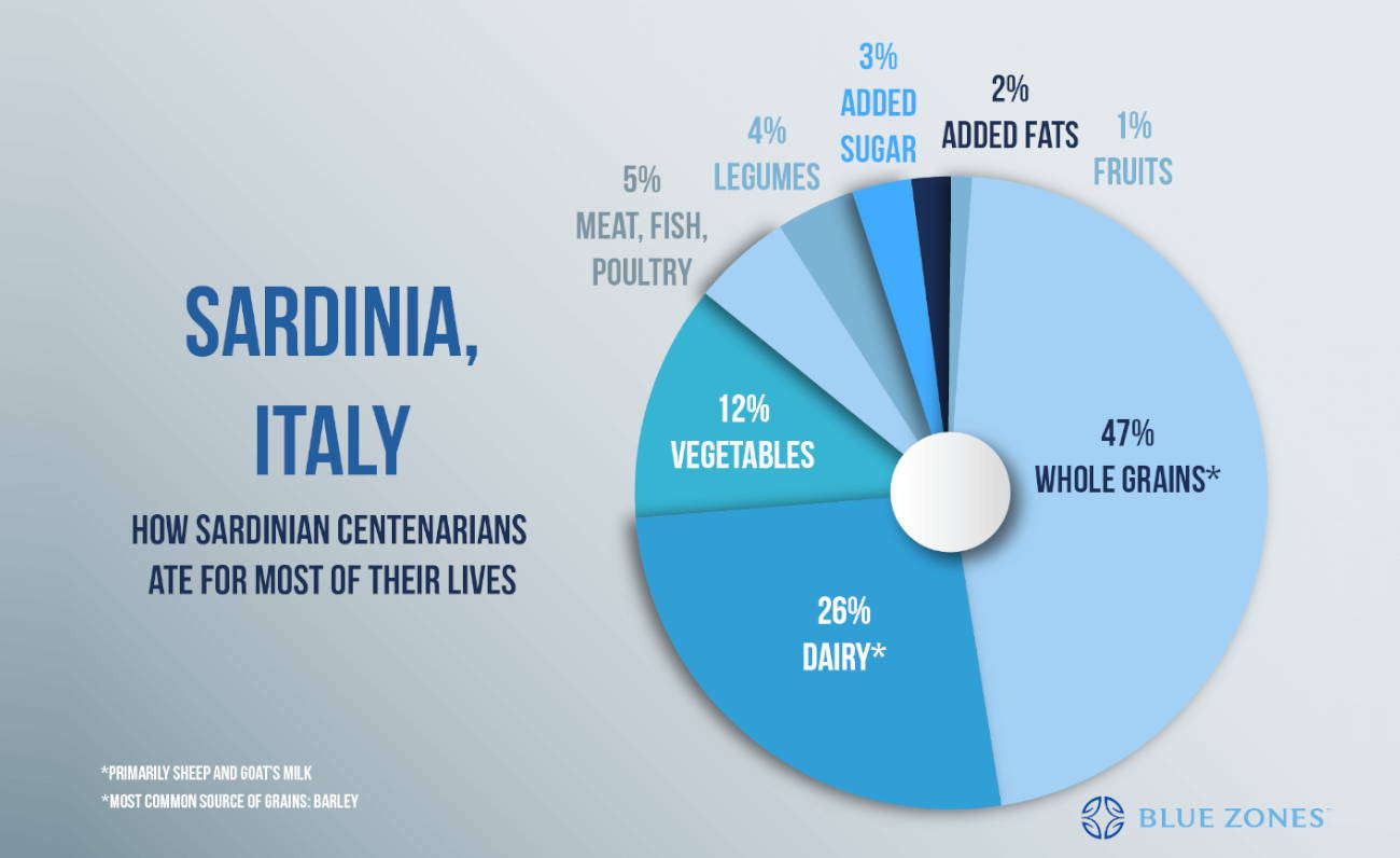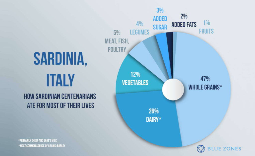 Sempre dal sito web di Blue Zones scopriamo che, insieme al movimento e al legame per la propria comunità, i sardi mangiano bene e soprattutto cibo locale.