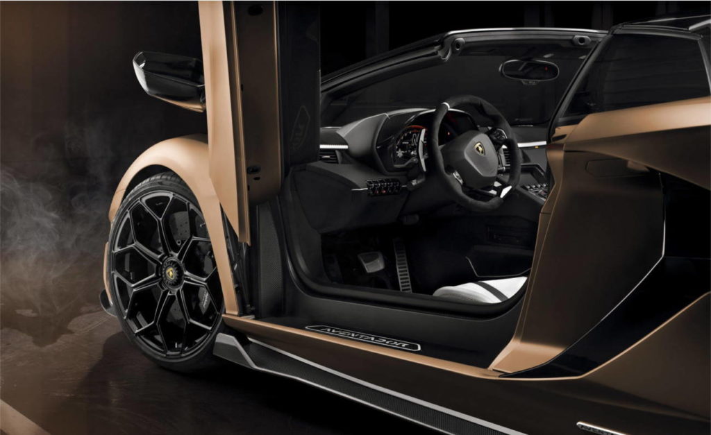 Interni totalmente personalizzabili, in pelle e Alcantara, per enfatizzare il gusto personale. In breve: unica. Sono le caratteristiche della Lamborghini Aventador SVJ, acronimo di “Super Veloce Jota”, praticamente il non plus ultra della produzione Lamborghini che ha un motore V12 aspirato da 6,5 litri capace di erogare una di potenza di 770 cavalli a 8500 giri/min e 720 Nm di coppia. Realizzata in solo 800 esemplari la nuova nata conserva la potenza, le prestazioni e le stesse tecnologie aerodinamiche innovative della versione Coupé e la si può considerare la più iconica della famiglia Aventador. Dovrebbe essere l\'ultima a venire proposta con un V12, perché per il futuro si sta lavorando a un sistema ibrido. A colpire immediatamente in questa roadster è il design, particolare e avveniristico, espressione del gusto e dell’artigianato italiani più raffinati. Il motore aspirato V12 è il più potente di sempre, capace di raggiungere più di 350 km/h a un regime di 8.500 giri/min, con una frenata da 100 a 0 km/h in soli 31 metri. Il grande alettone posteriore e la versione 2.0 del sistema ALA, acronimo di Aerodinamica Lamborghini Attiva, brevettato direttamente dalla Casa di Sant’Agata bolognese al sistema uniti all’aero-vectoring offrono una minima resistenza all’avanzamento sul rettilineo e carico aerodinamico ottimale in curva, conferendo una grande stabilità e un controllo.