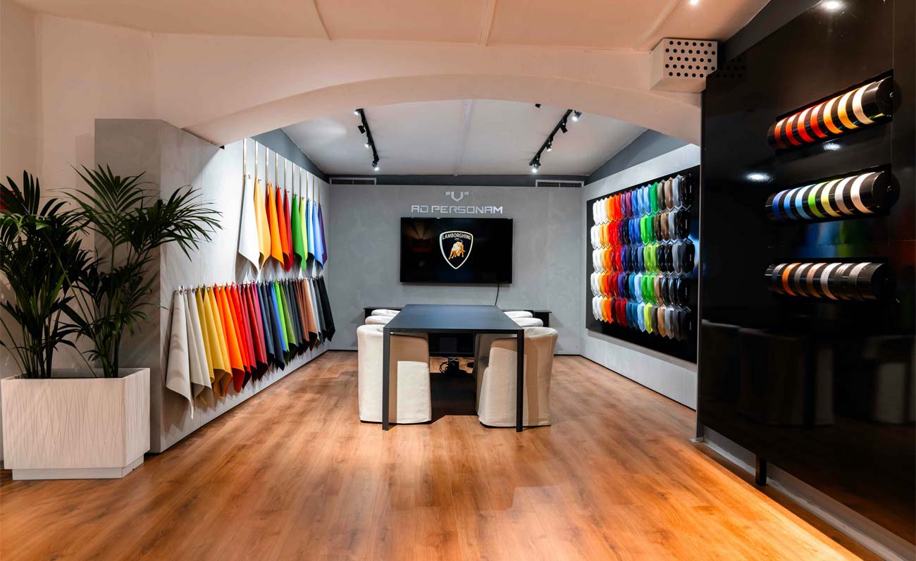 Seicento metri quadri, tra aree interne e patio privato, per proporre i test drive dei modelli più prestigiosi della casa del toro come il Super-SUV Urus S e l\'Huracán Tecnica. Vedere da vicino questi gioielli della tecnologia di Sant’Agata Bolognese è emozionante, ancor di più quando si accede all’abitacolo non di una semplice autovettura, ma di una storia leggendaria fatta di uomini leggendari.