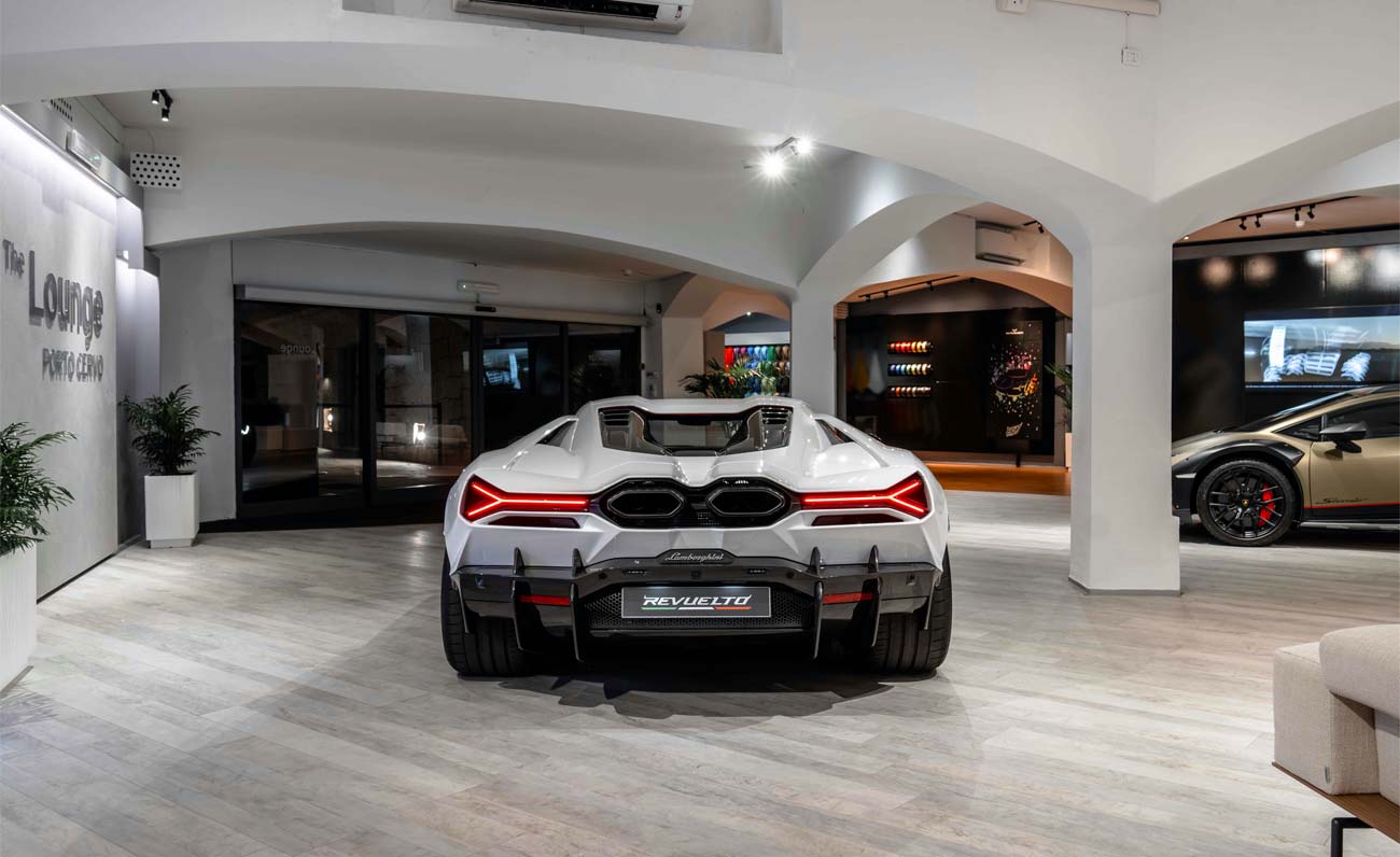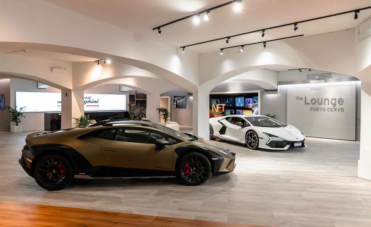La Lounge è realizzata con arredi realizzati in collaborazione con Living Divani e accessori di design a marchio Automobili Lamborghini. All\'ingresso si trova la nuova Lamborghini Revuelto, la prima supersportiva HPEV ibrida plug-in V12 del marchio, e l\'Huracán Sterrato in Verde Gea, l\'eclettica supersportiva all-terrain prodotta in soli 1499 esemplari, catturano l’attenzione. La nuova Lamborghini Revuelto, presentata nel marzo 2023, è una supersportiva ibrida plug-in V12 ad alte prestazioni con un\'architettura innovativa e un design aerodinamico efficiente. Con 1015 CV di potenza e un rapporto peso-potenza di 1,75 kg/CV, la Lamborghini Revuelto offre prestazioni eccezionali, accelerando da 0 a 100 km/h in soli 2,5 secondi e raggiungendo una velocità massima di oltre 350 km/h. Questo spazio di Porto Cervo si aggiunge a quelli già presenti a New York, Tokyo, Dubai, Doha e offre allo stesso modo la possibilità di esplorare tutte le ultime novità del marchio. Non manca, poi, lo spazio “Ae Personam Studio”, che permette ai clienti di personalizzare la supersportiva dei propri sogni potendo scegliere tra un’infinità di variabili di colori, rivestimenti, finiture e dettagli.