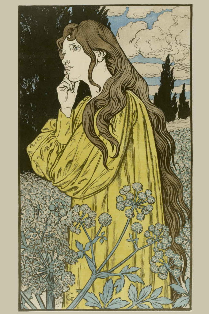- Eugène Grasset, Méditation, 1897, Stampa su seta, 78x43 cm, Private collection, London