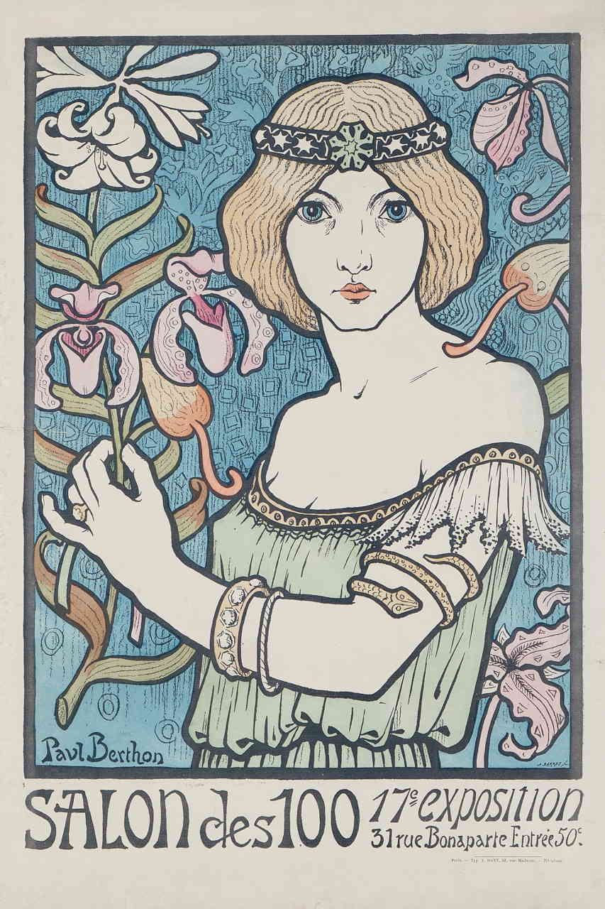 - Paul Berthon, Affiche pour la 17ᵉ exposition du Salon des Cent, 1897, Litografia a colori, 58,5x40 cm