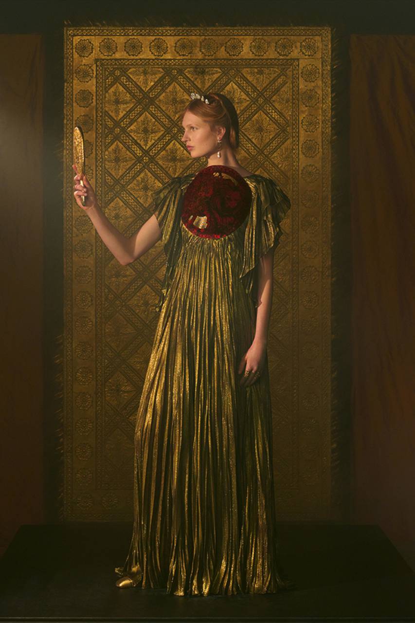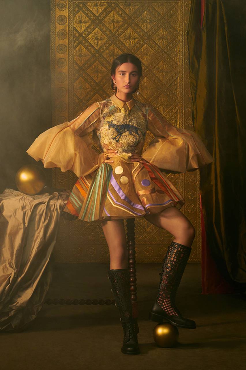 Appellandosi alla seduzione della magia, la collezione indaga gli aspetti più criptici del mondo interiore e ci introduce in un viaggio iniziatico alla ricerca della verità, avvalendosi delle figure degli Arcani maggiori come territorio di sperimentazione per l’haute couture. In un momento storico complesso come il nostro, in cui cerchiamo di riconnetterci con l’anima del mondo, leggere attraverso i tarocchi i grandi temi della vita è un modo per interrogarci lasciandoci trasportare dalla forza dei simboli.