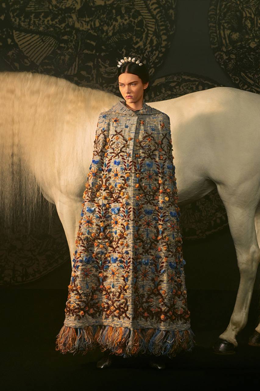 Nella fusione dei sessi e delle arti si compie un processo che porta all’autoconsapevolezza e la vera magia è l’atto della creazione, sublimato dalla nuova collezione Dior. Nascono 45 abiti che sembrano dipinti, ma in realtà sono il frutto prezioso di un’antica sapienza artigianale che fa tesoro delle suggestioni della fantasia e della divinazione.
