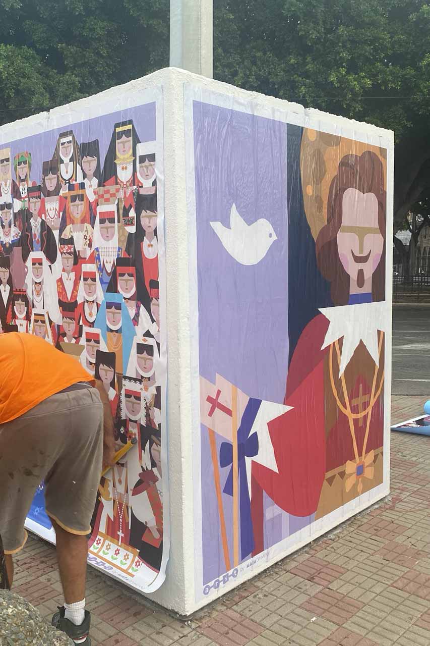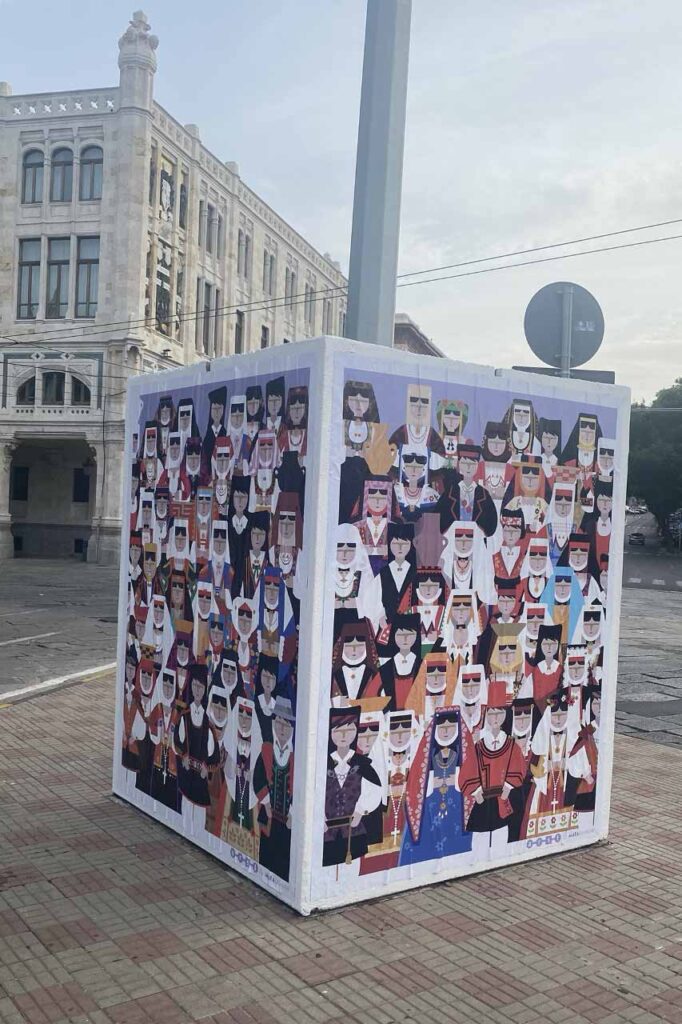 Il blocco che guarda alla salita della processione di Sant’Efisio, - continua Mara Damiani - è dedicato allo scioglimento del voto che la comunità svolge ogni anno dal primo maggio di ormai 366 anni.