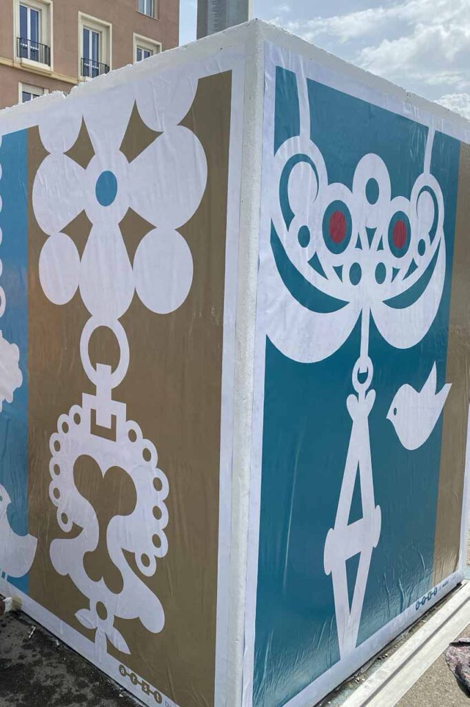 Le grafiche di Mara Damiani sui cubi di cemento
