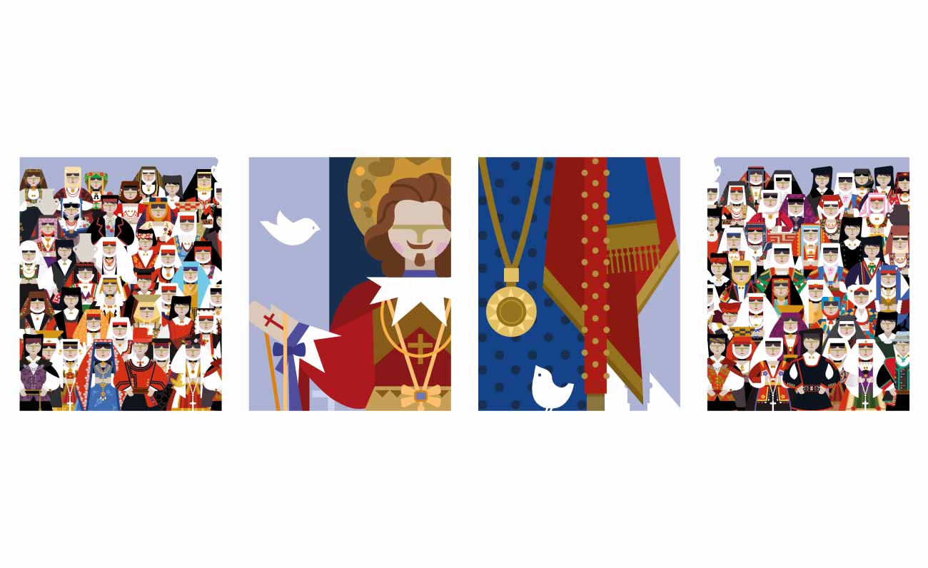 I quattro abiti indicati sono storici: SaPanettera, che io definisco la rejnas, cioè regina, di Cagliari, ogni donna porta l’abito della tradizione, ricco o umile che sia, in maniera regale. SaDesulesa è la donna di Desulo, poi vi è quella di Quartu Sant’Elena, con il cappello ed i fiori, e infine la regina di Oristano.