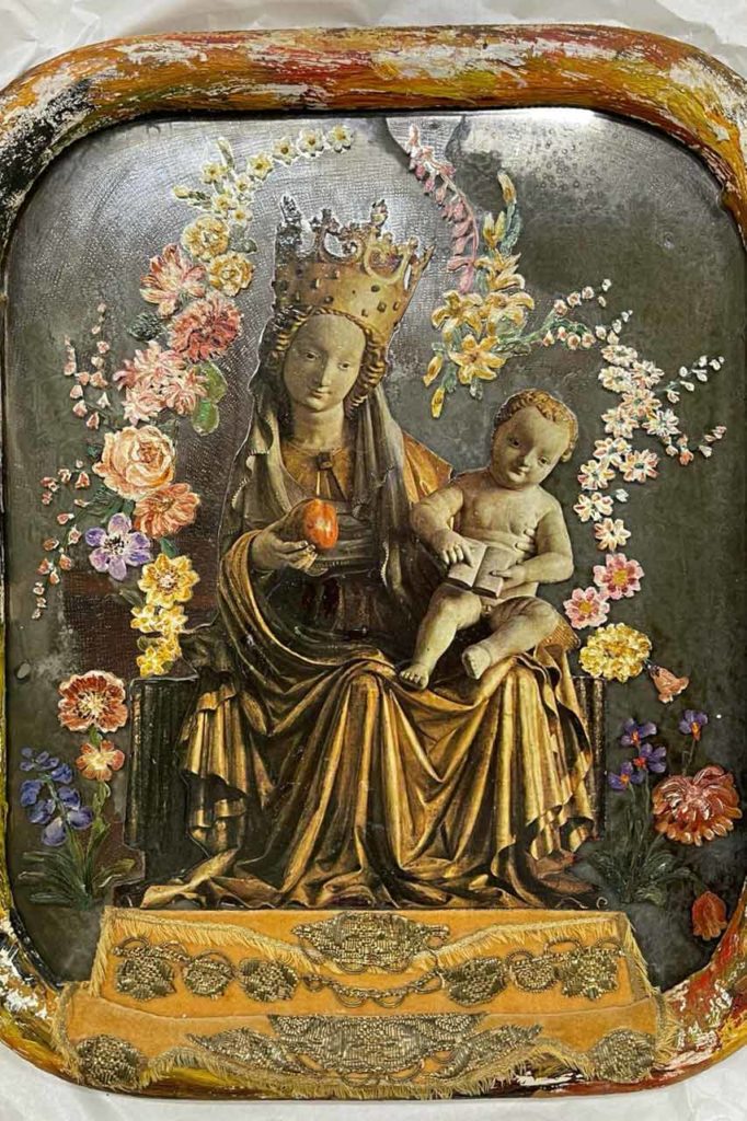 E non è finita qui. Alla Pinacoteca Nazionale di Sassari presenterà altri quindici capolavori di Edina Altara, messi a disposizione dall’Archivio Altara-Accorner. Da qui si darà vita a una sala apposita dove verranno esposte tutte le opere dell’autrice, dalle ceramiche ai dipinti realizzati verso gli anni ’50. Due (Salomè con la testa del Battista e Creazione) si riferiscono a tematiche religiose, mentre si potrà osservare da vicino Matrimonio a Oliena, che invece s’ispira al folklore e alla cultura popolare. Tutti però confermano la sua straordinaria attitudine a scavare a fondo tra gli oggetti, in una produzione poliedrica e di ampio respiro basata su materiali semplici come stoffe e carta ma che con suo ingegno diventano qualcosa di assolutamente unico.