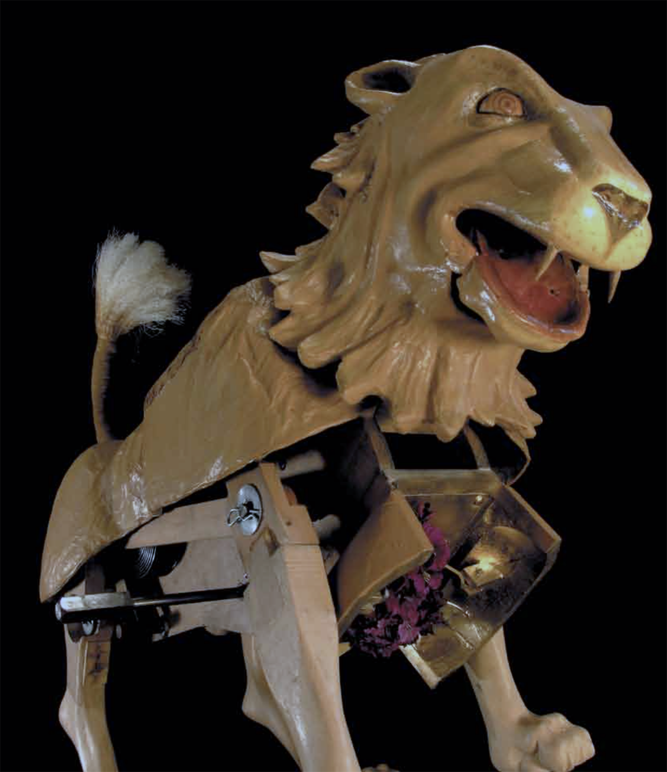 Ispirandosi a questo modello ha poi aggiunto un meccanismo a frizione, sempre disegnato dall’artista toscano, che permette all’animale di sollevarsi sulle zampe. Il leone semovente, con le sue complesse evoluzioni, cammina, si siede sulle zampe posteriori e apre il petto facendo fuoriuscire dei gigli.
