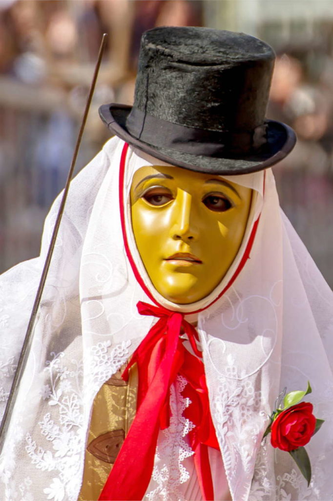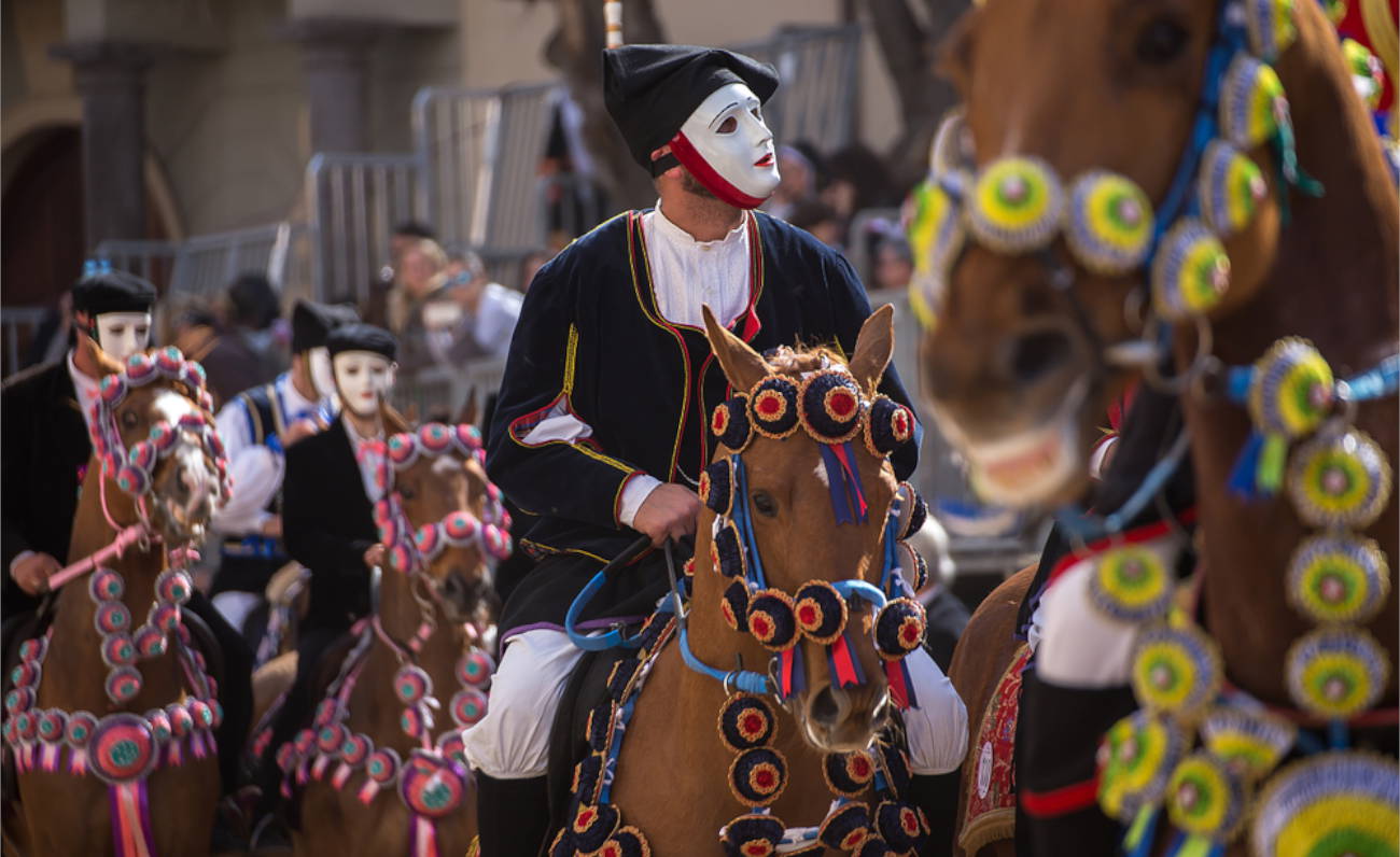 Cavalli lanciati al galoppo, maschere pallide in volto, un pubblico da far divertire ai bordi del tracciato in terra battuta. La Sartiglia di Oristano è uno spettacolo che resta impresso nella mente. È una giostra equestre di origine antichissima e che oggi rappresenta uno degli avvenimenti più seguiti e importanti in Sardegna. Nella settimana di Carnevale la città di Oristano indossa così l\'abito da festa, per un travolgente tripudio di colori, costumi e acrobazie che richiama migliaia di persone dal resto della Sardegna e anche dall\'estero.