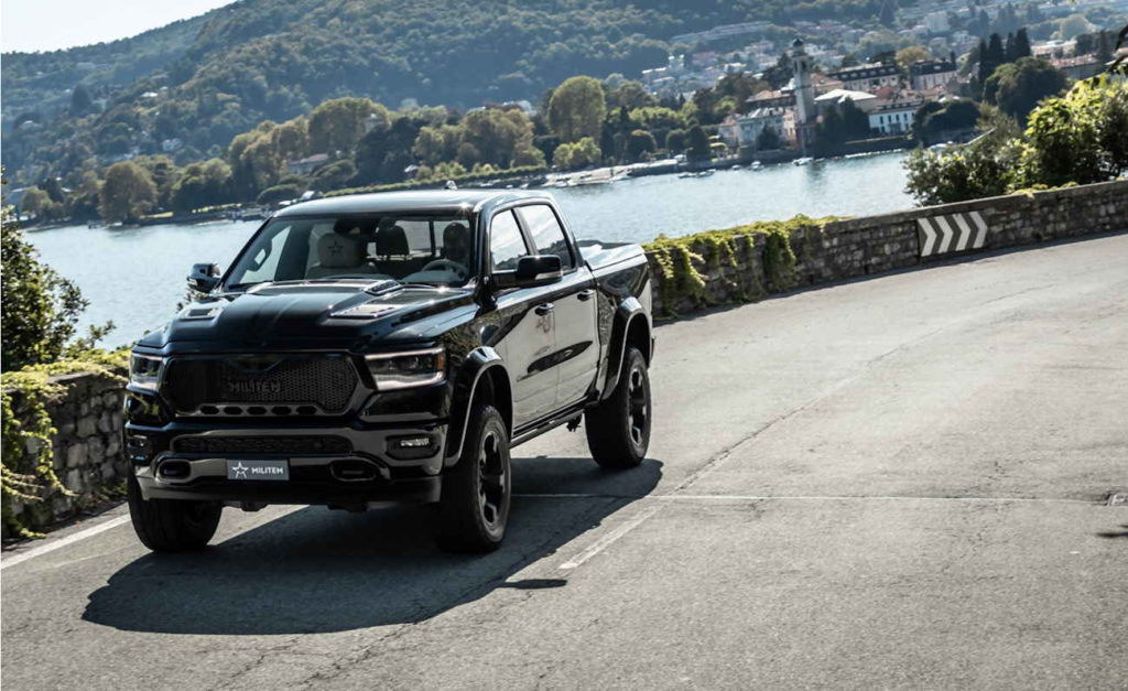 Militem è un mezzo perfetto per assecondare un naturale desiderio di libertà e di movimento. Produzione in piccola serie. Customizzabile a piacere e secondo richiesta. Forme importanti all\'esterno. Un cuore pulsante e potente sotto il cofano. Eleganza e raffinatezza all\'interno. Sedili in fior di pelle e Alcantara e 14 diverse combinazioni di colori. Adatto a ogni tipo di percorso. Asfalto o sterrato. Evoluzione del Dodge RAM 1500 Laramie è più di un pick-up, è un gioiello unico, dove l\'alta artigianalità italiana incontra la tecnologia automotive Made in Usa. L\'unione di due eccellenze, perfetta sintesi del DNA statunitense e del miglior Made in Italy assicurato dai più grandi maestri sellai. Cui si aggiunge il disegno esclusivo di Militem, il celebre brand italiano luxury premium.