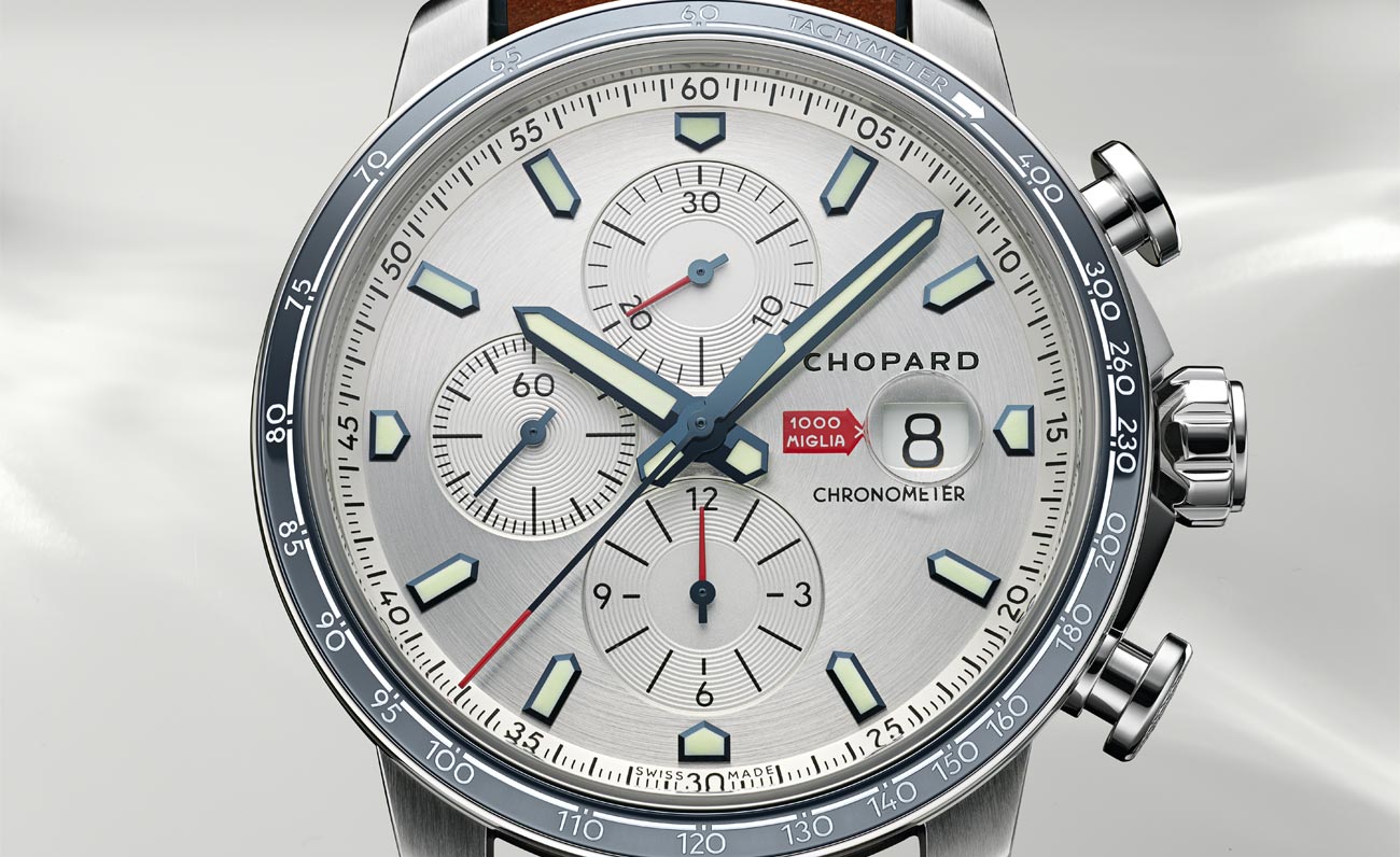 Il design del nuovo cronografo di Chopard è ispirato da quello della collezione Mille Miglia GTS, con tratti vintage che ne accentuano la sportività senza tempo. Le edizioni limitate di questo orologio, creato per la Mille Miglia 2022, sono due. Una ha la cassa completamente in acciaio ed è limitata a 1000 pezzi; l’altra abbina alla cassa in acciaio la corona, i pulsanti e la lunetta in oro rosa 18 carati. È disponibile in soli 250 esemplari. Pur mantenendo le caratteristiche della collezione GTS, il Mille Miglia 2022 Race Edition ha molti dettagli che lo rendono un orologio particolare. Il quadrante è di un bel colore grigio-argento, lavorato con una leggera satinatura circolare. Il suo colore contrasta con eleganza con il blu intenso dell’inserto della lunetta, delle lancette e degli indici. Come tutti i modelli della collezione Mille Miglia, anche il Mille Miglia 2022 Race Edition di Chopard risponde ai codici dell’eleganza maschile tanto cari alla famiglia Scheufele. Nel momento della sua creazione, la manifattura si è basata su tre capisaldi che vanno dalla tecnica all’estetica.
