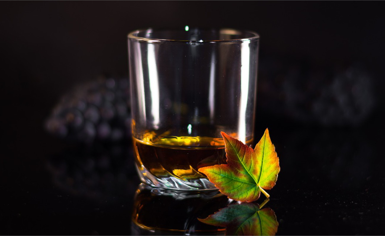 Nella geometria essenziale del vetro della bottiglia che contiene il prezioso liquore si identificano le linee di stile e i dettagli in cuoio che vanno a ricoprire il collo appena sotto il tappo. I colori ambrati del rum si replicano nei particolari in pelle naturale ripresi anche nella copertura del tappo in sughero che sigilla profumo e consistenza in uno scrigno di incanto destinato ai sorsi a venire.