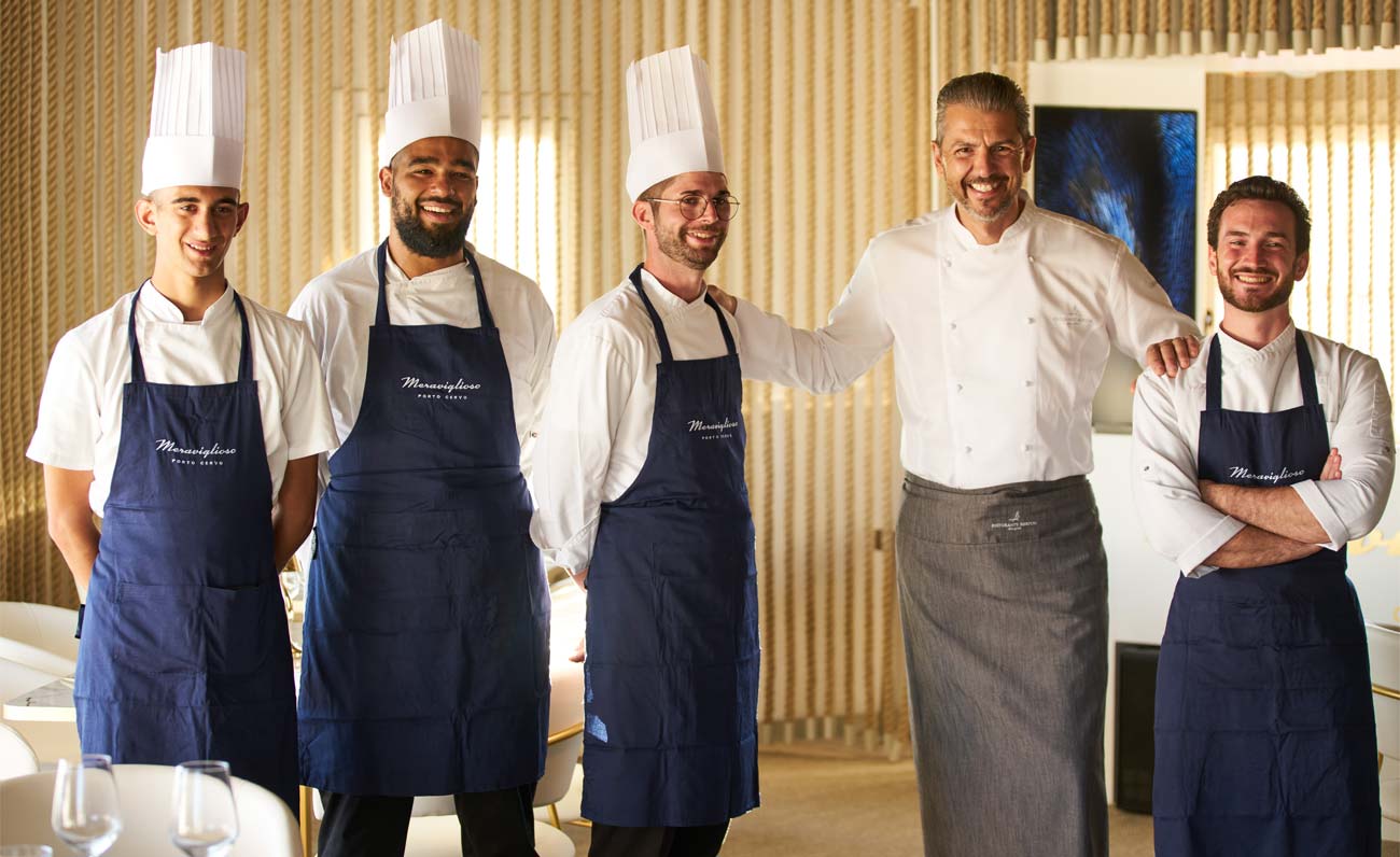 Partiamo allora dal menu degustazione della Terrazza Restaurant di Meraviglioso che è riuscito a legare la creatività e un gusto intenso che lascia il segno. Si va dal “Sashimi di ricciola” e “Melanzana pressata”; e si prosegue con i main dishes, tra cui “Tagliolini all’astice”, “Tonno scottato” e “Filetto di vitello”; per concludere, i raffinati dessert, tra cui l’immancabile “Uovo Berton” con yogurt e mango e “Anguria, basilico e limone”.