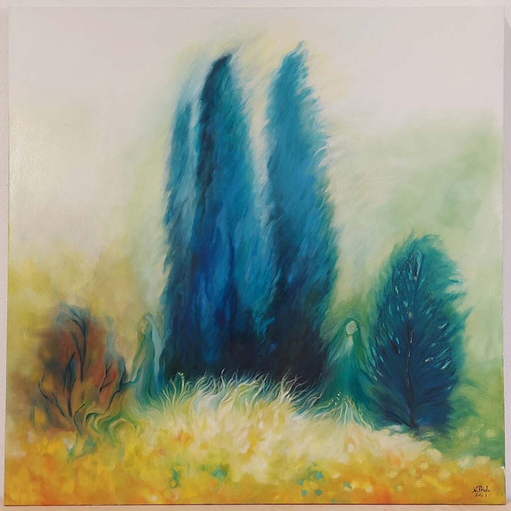 Quindi possiamo dire che da studente all’Istituto d\'Arte F. Costantino di Alghero, come parte di una designazione imperdibile, lei già creava connessioni; dipingendo da 24 anni, oggi è anche acquarellista per lo più di paesaggi trasferiti su tela. In continua evoluzione, curiosa, Nina Trudu ci racconta storie di colori che passano dalle vite degli ultimi quarant’anni, da un punto di vista privilegiato. Perché nel suo studio le collettive si fanno istallazioni di contemporaneità, fatti compiuti di vissuti letteralmente in simbiosi con i quadri, ma in procinto sempre di dire qualcosa.