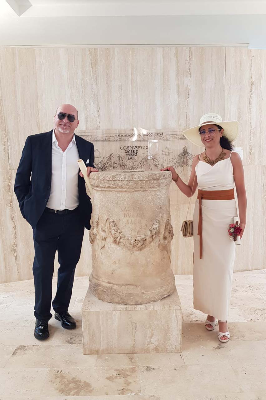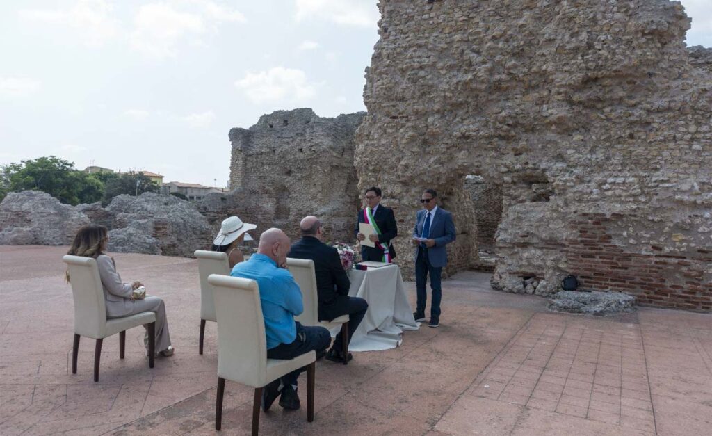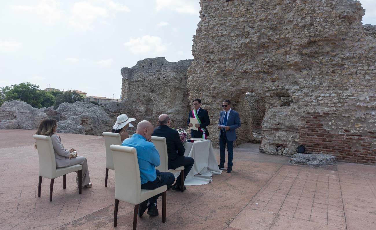 Sposarsi a picco sugli scavi, esposti nella terrazza del Palazzo più che un trend in forte ascesa, per Angela e Giacomo è un privilegio e una sorta di naturale conseguenza dell’aver consacrato buona parte della loro vita allo studio e alla passione per la storia. Qualcosa che ha la forza dell’inevitabile, che per entrambi ricalca l’aspirazione umana alla scoperta e alla divulgazione.