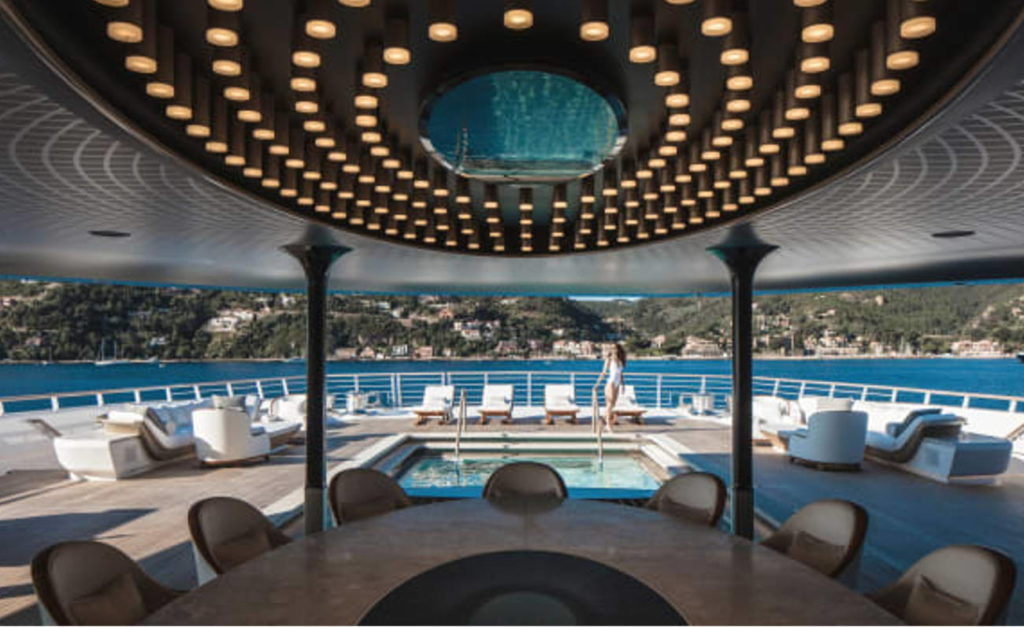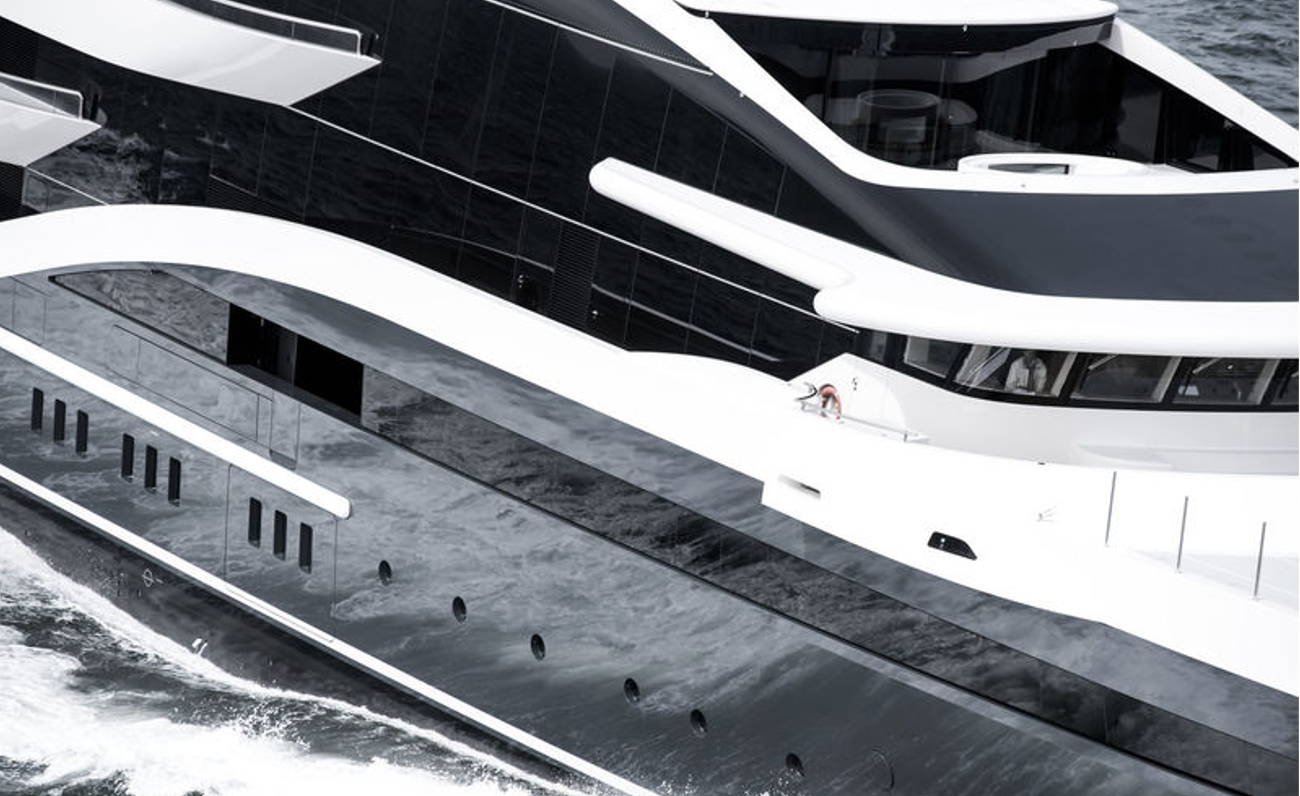 È la migliore rappresentazione di come si la migliore tecnologia della lavorazione del cristallo possa venir declinata per soddisfare i più arditi concetti dello yacht design. Nonostante le dimensioni, 90 metri dii lunghezza e 14,2 di larghezza massima, mantiene un profilo sportivo e filante. Il brand olandese costituito nel 1987 per il design esterno si è affidato a Luiz DeBasto che ha enfatizzato la sua proposta di ampie superfici vetrate. «Il profilo della barca trasmette una sensazione unica di contrasto e anche di omogeneità tra il vetro scuro e le balconate bianche - ha dichiarato Luiz DeBasto - Si crea così un costante scambio di forme e linee tra i due elementi. I miei disegni iniziali potevano sembrare un concetto futuristico, eppure ora è uno yacht reale, un “miracolo” reso possibile dall\'avanzata tecnologia sulla quale il team di ingegneri di Oceanco può contare, oltre che dalla visionarietà del suo proprietario, un armatore con lunga esperienza nel modo dello yachting e del suo team». Gli interni, invece, sono firmati dallo studio italiano Nuvolari Lenard e quelli dell\'architettura navale, da Oceanco/Azure. L\'idea alla base di questa creazione, spinta da due motori MTU 20V 4000 M73L capaci di erogare 4,828hp con una velocità di 20 nodi, è quella di sfruttare al meglio e al massimo le opportunità di vita all\'aria aperta durante la navigazione o la sosta senza mai perdere il contatto con l\'ambiente marino circostante.