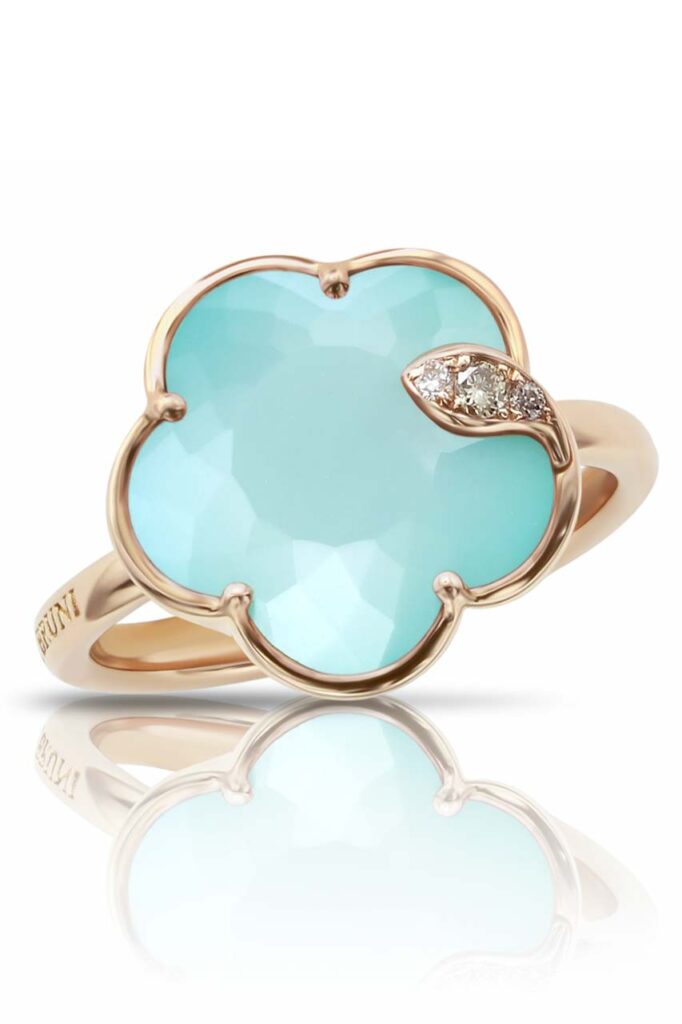 Ancora una volta Pasquale Bruni propone nuovi tesori che ampliano l’offerta delle proprie collezioni. Uno degli ultimi esempi è la collezione Petit Joli, disegnata per donne dallo spirito libero che rinnovano continuamente la loro energia vitale. La linea esprime il solido legame tra la natura e la femminilità. I fiori riflettono i colori del cielo, dello spazio e della terra; colori con una identità riconoscibile ma anche allo stesso tempo sono ricchi di dolcezza espressiva.