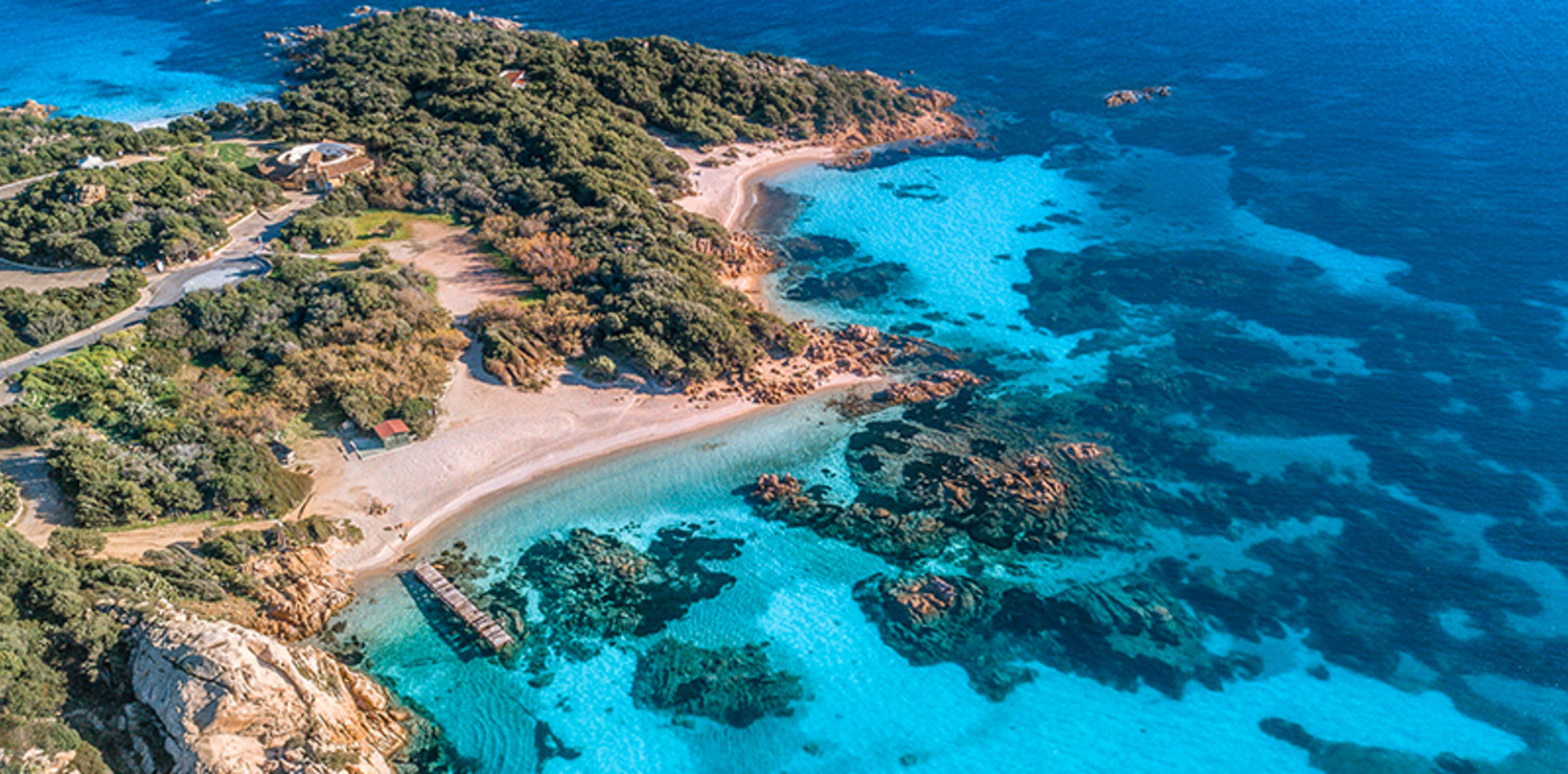 La Spiaggia Capriccioli è composta da piccole spiagge di sabbia bianca e un'acqua bassa di colore turchese-ceruleo, protetta da rocce giallo-rosa e circondata dal verde della vegetazione mediterranea. Il lato ovest presenta fondali sabbiosi poco profondi, ideali per le famiglie con bambini e per gli appassionati di snorkeling, grazie alla presenza di diverse specie di pesci.