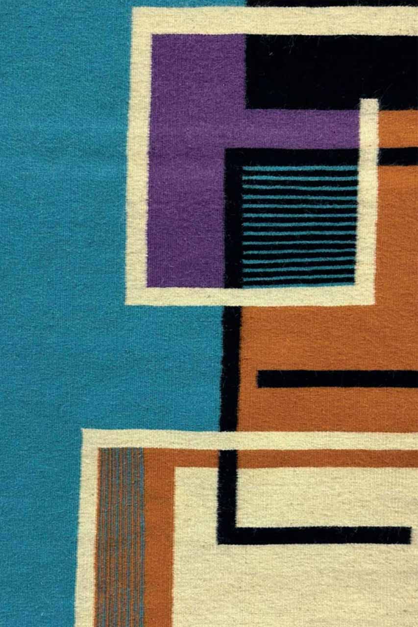 La quarta e ultima mostra dal titolo Trame e Geometrie è dedicata al lavoro dello Studio Pratha, un gruppo creativo nato da un’idea di Graziella Carta nel 2017. Pratha reinterpreta in chiave contemporanea una tecnica di tessitura dalla storia millenaria, ormai praticata solo nel borgo di Sarule. La fase esecutiva degli arazzi resta ancorata al cuore della Barbagia, dove le maestre tessitrici creano le opere Pratha utilizzando  lana di pecora sarda e lavorando sul tradizionale telaio verticale, totalmente manuale.