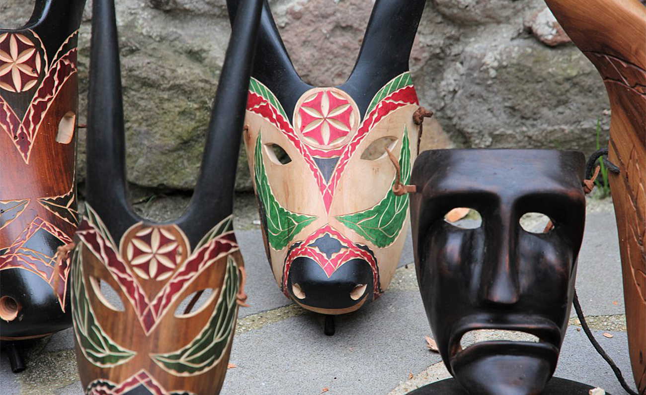 Questi oggetti, realizzati prevalentemente in legno per evocare la comunione dell’essere umano con la terra, sono diversi e unici di zona in zona, ognuno con lo scopo di richiamare alla mente di chi li osserva antichi miti, demoni, figure divine e semi-divine o semplicemente umane. La origine va ricercata negli antichi riti Dionisiaci durante i quali gli uomini celebravano il rito della morte e della rinascita.