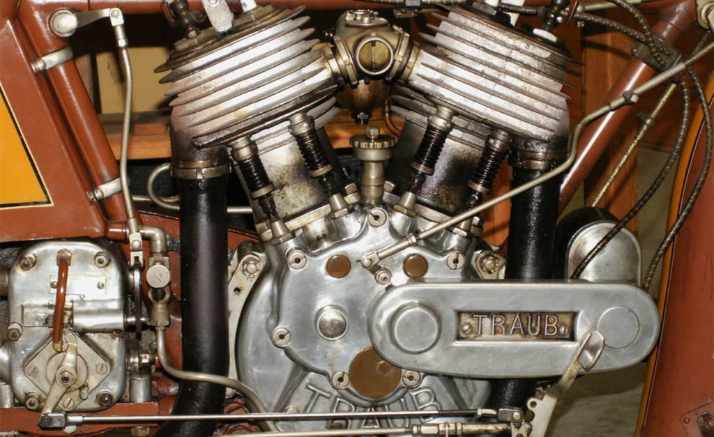 Al confronto con le concorrenti contemporanee la Traub ha una meccanica raffinata: motore bicilindrico sand-cast da 1278cc, a valvole laterali, pistoni lavorati a mano e valvole laterali, configurazione che Harley Davidson adottò solo nel 1936, cambio a 3 marce assolutamente inedito per i suoi tempi ed un avanzato freno posteriore. Ulteriore particolarità è che tutti i componenti, come telaio, forcella, serbatoio, manubrio, parafanghi e ogni singolo elemento del motore, è stato realizzato a mano ed è, quindi un pezzo unico. Una vera opera d\'arte, oscuro capolavoro di un genio o prototipo di una di quelle piccole e innumerevoli case che sparirono senza lasciare traccia. Infatti, all\'inizio del millennio scorso erano esistevano diversi produttori, per lo più officine che creavano limitate serie di modelli, spesso su ordinazione. Una situazione che durò fino a metà anni 20 quando sopravvissero solo tre grossi produttori: Harley-Davidson, Indian ed Excelsior. (Fabio Schiavo)