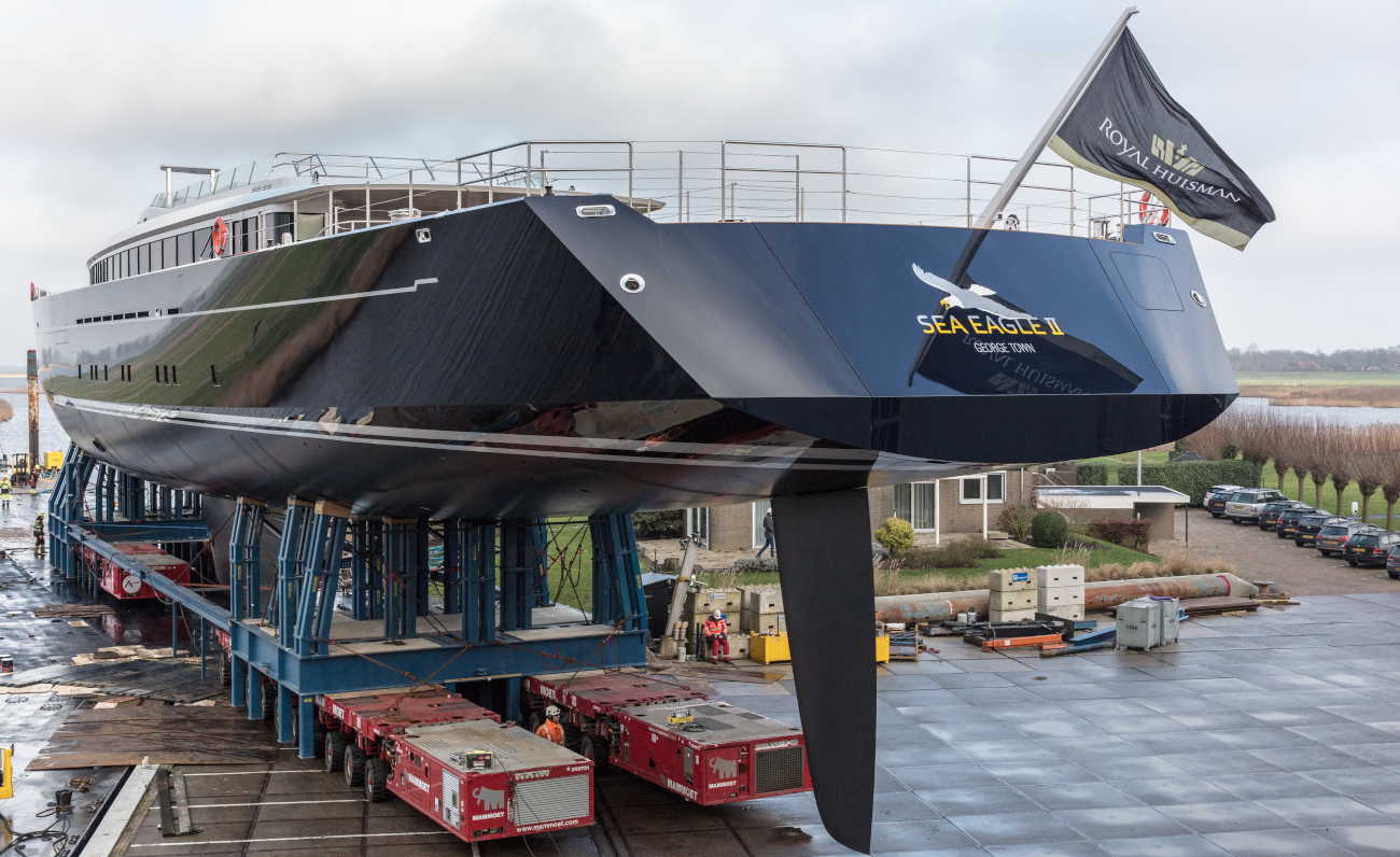 La consegna al proprietario avverrà nella primavera 2020. Fedele al motto aziendale dello shipyard olandese: \"Se tu puoi sognarlo, noi possiamo costruirlo\" la Sea Eagle II, tra i cinque yacht d lusso più grandi al mondo ma il più grande in alluminio, colpisce per le misure e per tanti particolari, come ad esempio, il contrasto cromatico tra lo scafo in alluminio scuro e il ponte in legno dorato che esalta le linee sportive create dallo studio Dykstra Naval Architects, per le architetture navali, con gli interni affidati allo studio Mark Whiteley Design. Per gli ospiti sono state previste sei cabine Vip oltre alla suite armatoriale e agli alloggi per i 13 membri dell’equipaggio.