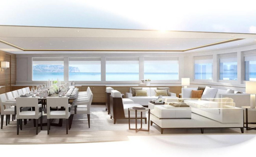 Tra i pochi rendering disponibili, particolarmente interessante è quello di uno degli interni disegnati da Mark Whiteley, una zona rifinita con paratie di Alpi Walnut e pavimenti in rovere che crea un\'area salotto informale più un grande tavolo da pranzo che può ospitare fino a 16 persone. Sono disponibili per ospiti scooter d\'acqua, paddleboard stand-up, kayak e due tender, nonché attrezzatura per l\'immersione. «Ora sembra solo un moderno yacht a vela - ha dichiarato Dykstra Naval Architects, responsabile dell\'architettura navale - bizzarro, ma per certi versi tradizionale, tra 50 anni, invece, sarà considerato un classico», sentimento ripreso da Mark Whiteley, anche lui responsabile degli interni, che ha affermato: «questo yacht ha un profilo classico e senza tempo con interni puliti e moderni. Non passerà mai di moda». Secondo Thys Nikkels, amministratore delegato: «Usare la nostra esperienza e le menti inventive per creare un yacht goletta contemporaneo innovativo per un rapido passaggio è un segno di spunta per la nostra lista dei desideri.» (Fabio Schiavo)