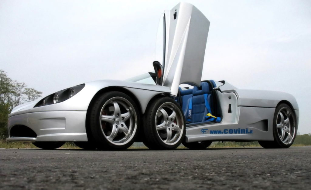Una hyper car unica nel suo genere. Due posti secchi e tetto rimovibile. Stile aggressivo. Due porte, con apertura verso l\'alto. E sei ruote, davanti quattro, piccole e basse, per migliorare l\'inserimento in curva e dare un profilo più \'cattivo\' e affusolato, più grandi posteriormente. Rara, solo due esemplari all\'anno. Italianissima. Prodotta dalla Covini azienda automobilistica artigianale dedicata alla produzione di prototipi innovativi, fondata nel 1978 dall’Ingegner Ferruccio Covini a Castel San Giovanni (Piacenza). Indubbiamente particolare. Affascinante. Con soluzioni tecniche coraggiose e un\'estetica dal giusto sapore retò. E un omaggio alla mitica Tyrell Ford P34 - progetto di Derek Gardner, successivamente evoluto da Maurice Philippe - che si fece notare in Formula Uno conquistando una vittoria a vittoria nel Gran Premio di Svezia del 1976 dove segnò una storica doppietta, con Jody Schekter al primo posto e Patrick Depailler al secondo. Una vettura, la C6W dalla lunga gestazione e diverse modifiche. Infatti, l\'idea iniziale per questa sei ruote, pensata verso alla fine degli anni Settanta, venne lasciata \'dormiente\' a lungo tempo perché all\'epoca non esistevano ancora pneumatici con profilo ribassato. Nel frattempo, la Covini creava diversi prototipi di successo come la B24/Sirio Turbocooler nel 1981, berlinetta a motore centrale e primo diesel stradale a superare i 200 km/h, o la C36 Turbotronic del 1998, prima vettura sportiva sperimentale dotata di motore diesel common rail con 313 cavalli di potenza capace di raggiunge i 320 chilometri all\'ora. Al progetto C6, ripreso nel 2003, segue l\'anno successivo un prototipo e poi la presentazione ufficiale della vettura definitiva, sebbene con alcune modifiche - nuove ruote, interni rivisti e differente struttura per il tetto - al Salon International de l\'Auto 2005 di Ginevra. Grande l\'interesse e l\'attenzione suscitati dal particolare mezzo anche per le incredibili caratteristiche tecniche ed estetiche. Da quel momento la Covini diventa un oggetto di culto per appassionati di hyper car a produzione limitata. La Covini C6W, disponibile, a metà 2020, dopo le prove per l\'omologazione, ha trazione posteriore, e doppio avantreno sterzante. Telaio misto in traliccio di tubi in acciaio, con rinforzi e parti strutturali in fibra di carbonio, soluzione mista ripresa anche per il telaio che unisce vetroresina e carbonio. Peso: intorno ai 1150 chilogrammi. Il motore termico è montato in posizione centrale ed è accoppiato a un tradizionale cambio manuale a 6 marce o a un cambio a palette a frizione singola a 6 marce al volante.