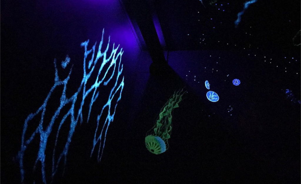 L’allestimento delle sale espositive interne è da subito affascinante come la storia che racconta. Anche qua infatti sono stati dipinti dei murales, arricchiti di pesci che nuotano, meduse fluorescenti e pannelli informativi che si rivolgono a visitatori di tutte le età per condividere con loro la bellezza dell’ecosistema marino e l’urgenza di proteggerlo dalla mano dell’uomo.